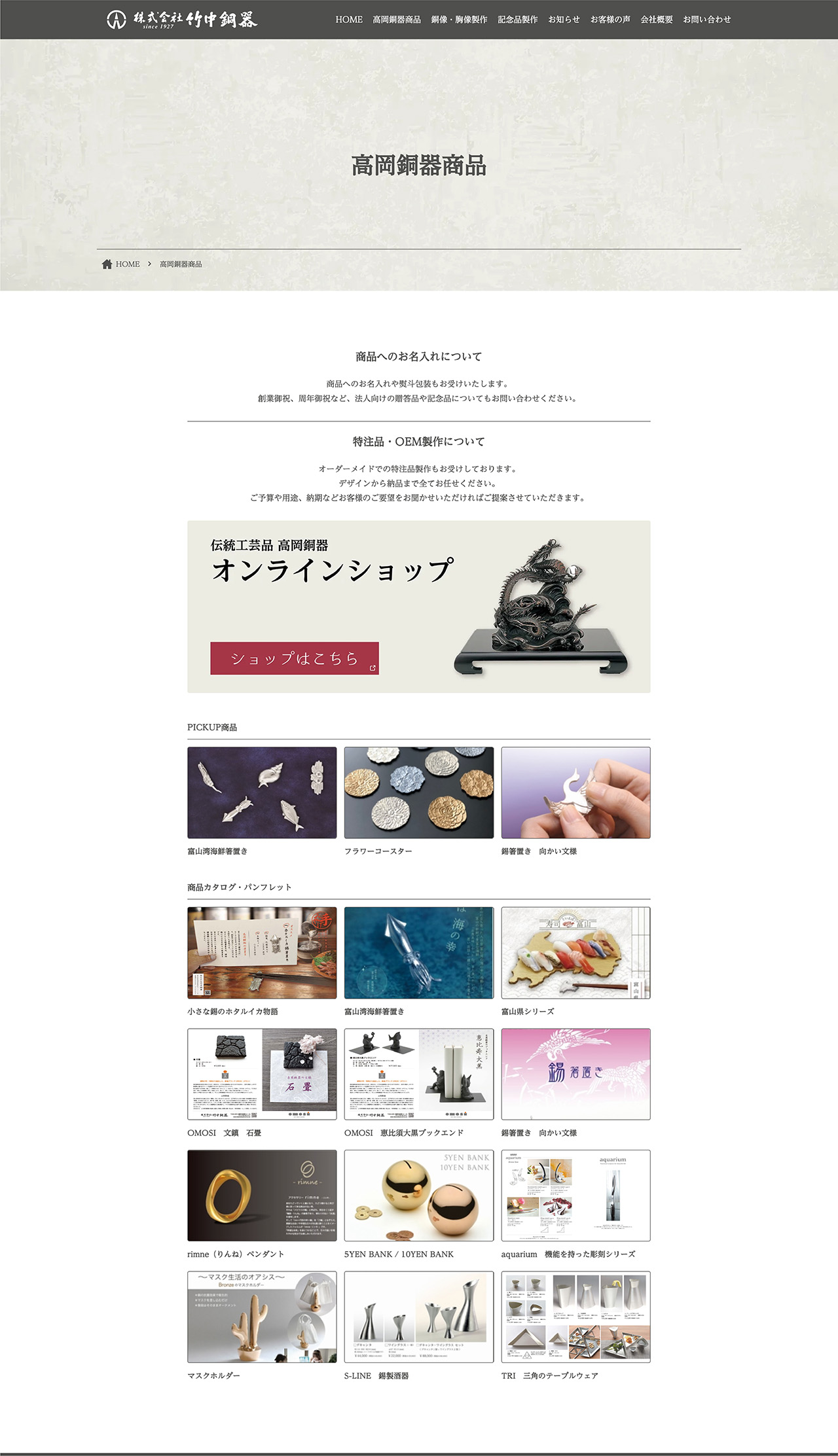 1927年の創業から、技術と精神を重んじた伝統工芸「高岡銅器」を取り扱う竹中銅器さま。今後もこの伝統を繋いでいく企業として、ものづくりに想いを込め続けます。